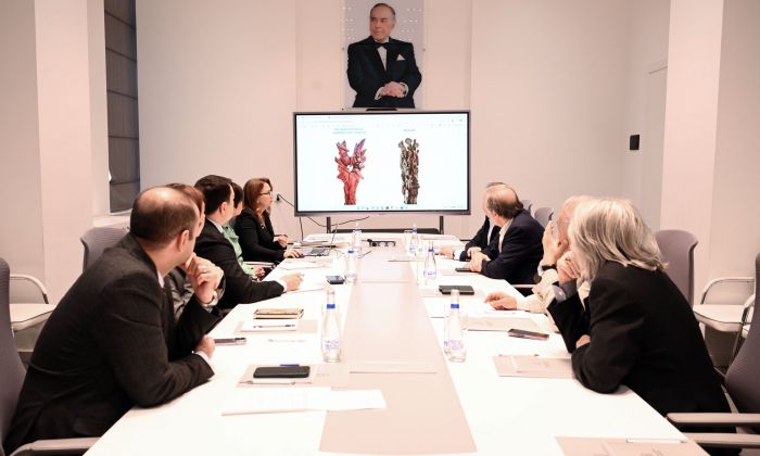 Görüşdə komissiyanın sədri, Azərbaycan Rəssamlar İttifaqının rəhbəri Xalq rəssamı Fərhad Xəlilov çıxış edərək kommissiyanın fəaliyyəti haqqında məlumat verib. Komissiyanın üzvləri – Xalq rəssamları, Rəssamlıq Akademiyasının rektoru Natiq Əliyev, Hüseyn Haqverdiyev, Aydın Rəcəbov, Memarlar İttifaqı İdarə heyətinin sədri Elbay Qasımzadə, “Azərxalça” ASC İdarə heyətinin sədri Emin Məmmədov, Azərbaycan Dövlət Mədəniyyət və İncəsənət Universitetinin prorektoru Sevil Kərimova və Mədəniyyət Nazirliyinin sektor müdiri Aybəniz Əliyeva komissiyaya edilən müraciətlər, əsərlərin qiymətləndirmə meyarları və digər məsələlərlə bağlı fikirlərini bölüşüblər.
