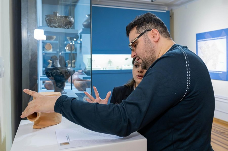 Ekskursiya çərçivəsində onlara incəsənət nümunələrinin kiçik replikaları, rəsm əsərlərinin relyefli surətləri və eksponatlar haqqında məlumatların rahat əldə edilə bilmələri üçün Brayl əlifbası ilə mətnlər təqdim olunub.