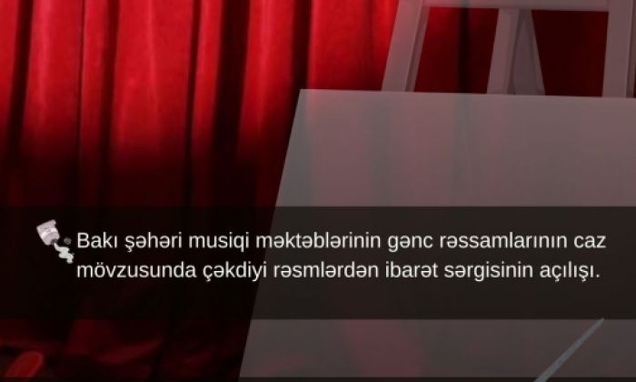 "Fotoqrafiya Evi"ndə isə Bakı şəhəri musiqi məktəbləri şagirdlərinin caz musiqisi ifaçılığı üzrə müsabiqəsi keçiriləcək. Onların ifalarını musiqi və incəsənət xadimlərindən ibarət münsiflər heyəti qiymətləndirəcək.