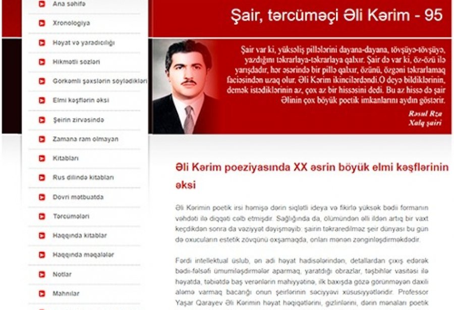 “Şair, tərcüməçi Əli Kərimli 95” adlı elektron məlumat bazası kitabxananın saytında yerləşdirilib.