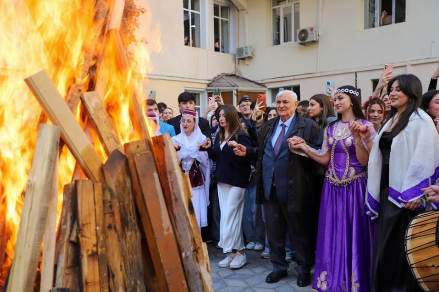 Sonda Novruz tonqalı alovlanıb. İştirakçılar tonqal ətraflnda rəqs ediblər.