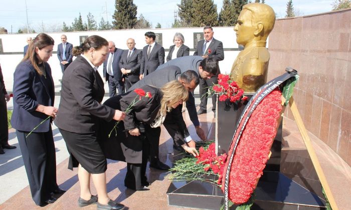 Əvvəlcə soyqırımı qurbanlarının, daha sonra isə Milli Qəhrəmanın əziz xatirəsi ehtiramla yad olunub, abidələr önünə gül dəstələri düzülüb.
