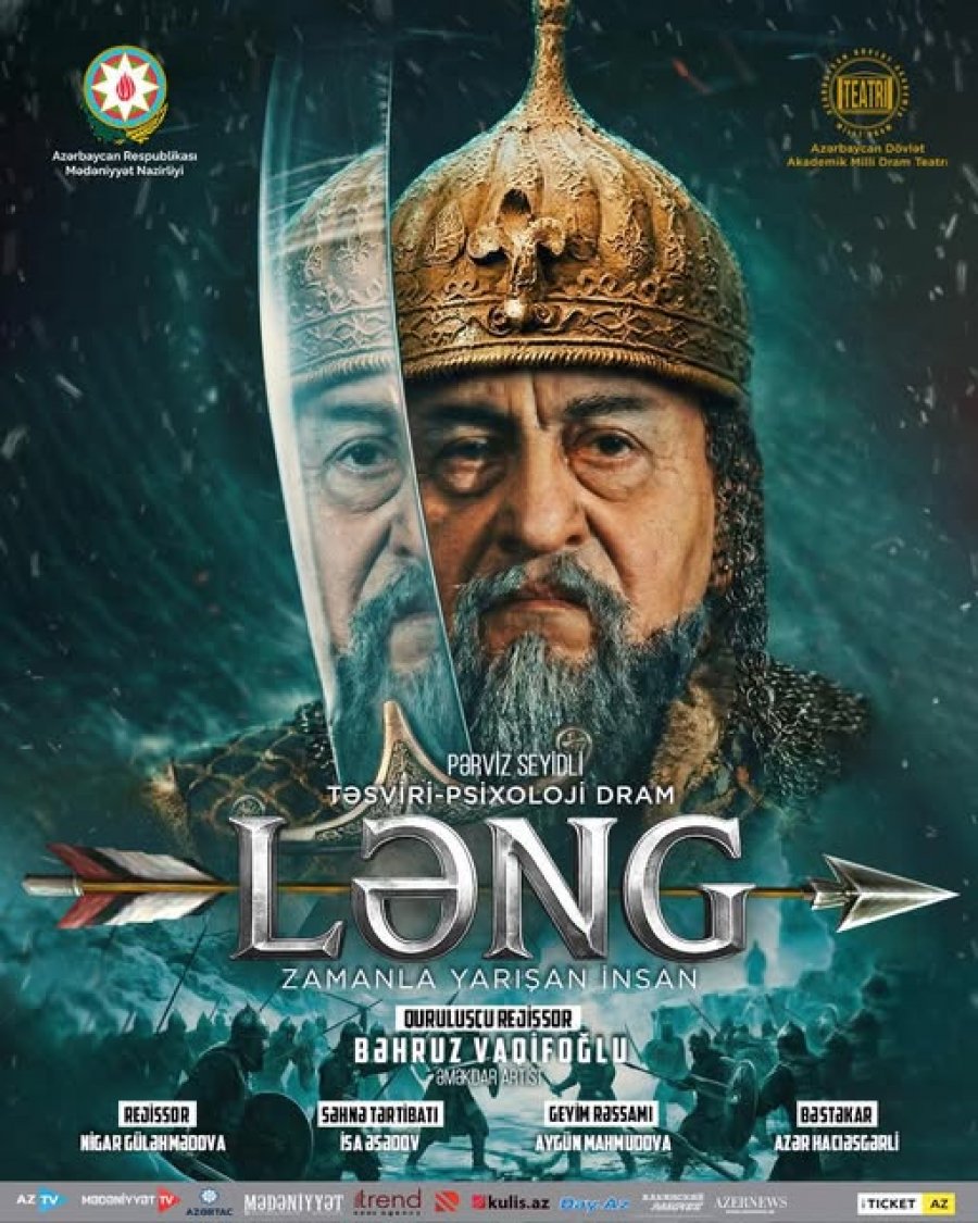 “Ləng: zamanla yarışan insan” tamaşası da Akademik Milli Dram Teatrının repertuarına yeni daxil olub. Qüdrətli hökmdar və sərkərdə Əmir Teymurun həyat və döyüş yolundan, Türk dünyasında milli özünüdərk ideyasından bəhs edən tamaşa Mədəniyyət Nazirliyinin “Zəfərdən qələmə” pyes müsabiqəsinin qalibi Pərviz Seyidlinin əsəri əsasında hazırlanıb. İlk nümayişi Milli Teatr Günündə (10 mart) olan səhnə əsərinə Əməkdar artist Bəhruz Vaqifoğlu quruluş verib.