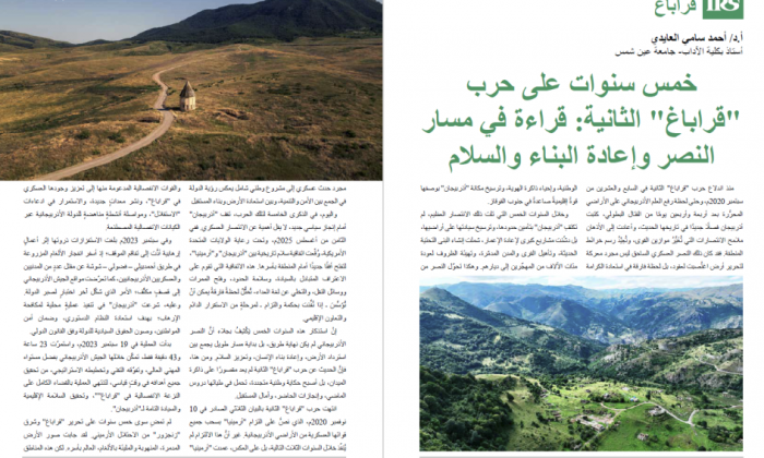 Misirin Ayn Şəms Universitetinin professoru, filologiya üzrə fəlsəfə doktoru, azərbaycanşünas-alim Əhməd Sami əl-Aydinin “İkinci Qarabağ müharibəsinin 5 ili: Qələbə, yenidənqurma və sülh yoluna baxış” məqaləsində işğaldan azad olunmuş ərazilərdə aparılan bərpa işləri və gələcək inkişaf perspektivləri təqdim edilib.