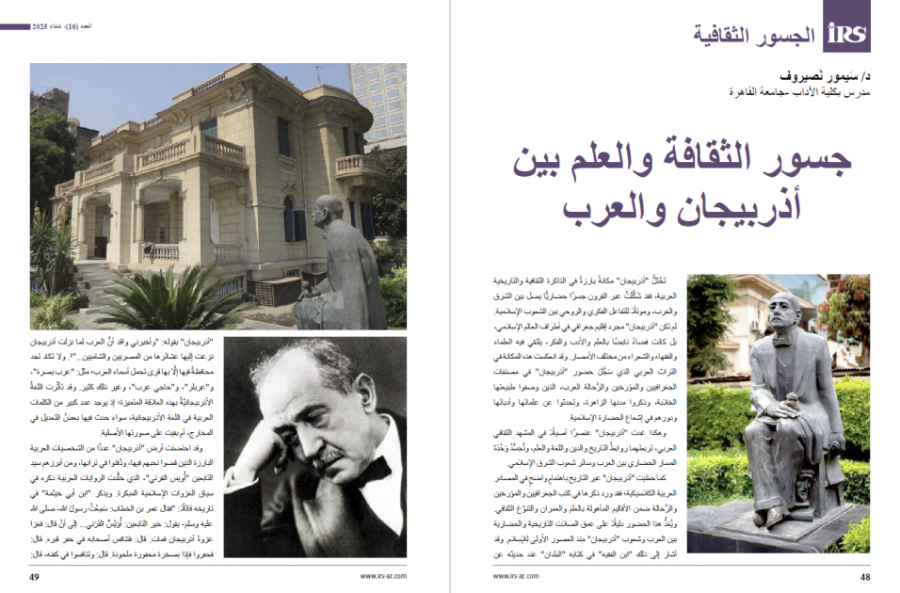 Jurnalın bu buraxılışında Azərbaycan ilə ərəb dünyası arasında mədəni və elmi əlaqələrə, memarlıq irsinə və təbiət gözəlliklərinə həsr olunmuş məqalələr də yer alıb. Misir-Azərbaycan Dostluq Cəmiyyətinin idarə heyətinin sədri Seymur Nəsirovun “Azərbaycan və ərəblər arasında elmi və mədəni körpülər” yazısı, Azərbaycan Memarlar İttifaqının Memarlıq irsi üzrə komissiyasının sədri Rizvan Bayramovun Bakının memarlığında “Art Nouveau” üslubuna dair araşdırması oxuculara təqdim edilib.