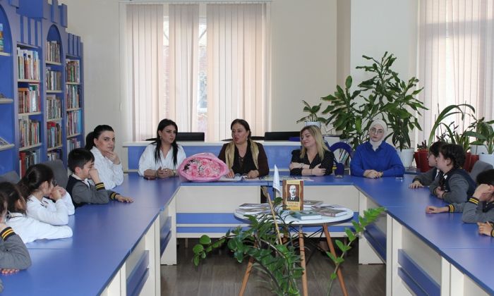 Gülzar İbrahimova şagirdlərlə səmimi söhbət aparıb, nağıllar oxuyub, uşaqların suallarını cavablandırıb və mütaliənin əhəmiyyətindən danışıb.