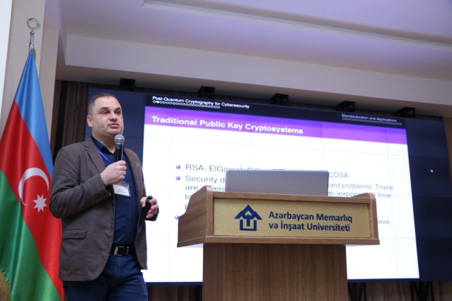 Konfransın ilk günü türkiyəli professor Sedat Akleylek “Postkvant kriptoqrafik protokollar: nəzəriyyədən praktikaya” mövzusunda məruzə ilə çıxış edib. Məruzədə gələcəyin kibertəhlükəsizlik çağırışları, kvant hesablama dövründə məlumatların qorunması və yeni şifrələmə mexanizmləri barədə məlumat verilib. Qeyd olunub ki, rəqəmsal transformasiya dövründə elm, təhsil və istehsalat arasında inteqrasiyanın gücləndirilməsi dayanıqlı inkişafın əsas şərtlərindən biridir.