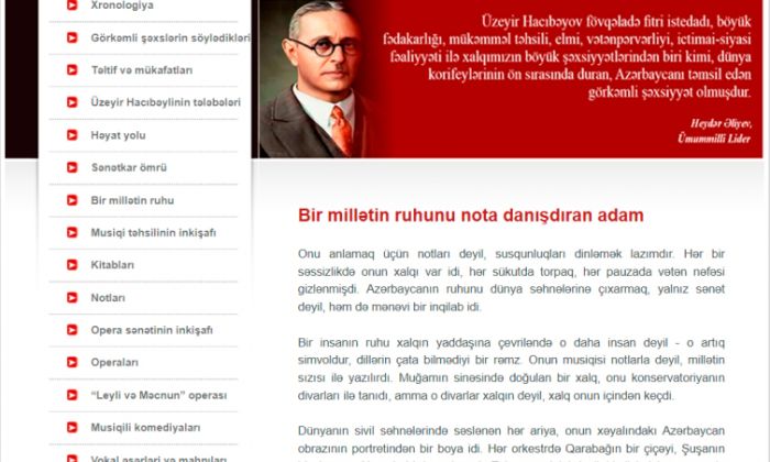 Bəstəkarın müəllifi olduğu operaların, musiqili komediyaların, romansların, vokal əsərlərin və mahnıların siyahısı, layiq görüldüyü dövlət təltifləri haqqında məlumatlar təqdim edilib. Bazada “Üzeyir Hacıbəylinin Azərbaycanda musiqi təhsilinin inkişafında rolu”, “Bir millətin ruhunu nota danışdıran adam”, “Sənətkar ömrü” kimi məqalələrin tam mətni ilə yanaşı, müəllifi olduğu və onun haqqında müxtəlif dillərdə nəşr edilən kitab və məqalələrin siyahısı da verilib.