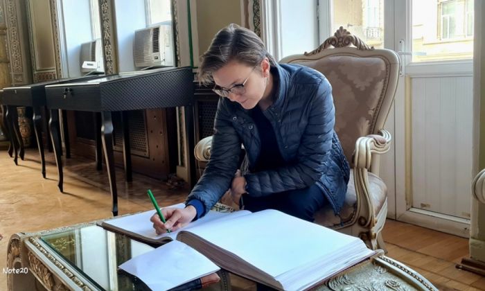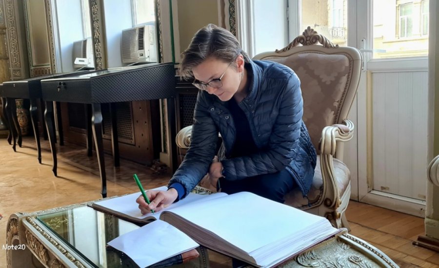 Ekspozisiya zalındakı Ümummilli lider Heydər Əliyev, Azərbaycan Xalq Cümhuriyyəti Parlamenti və böyük mesenat Hacı Zeynalabdin Tağıyev guşələri ilə də tanış olan Kelsi Rays institutun xatirə kitabına ürək sözlərini yazıb.