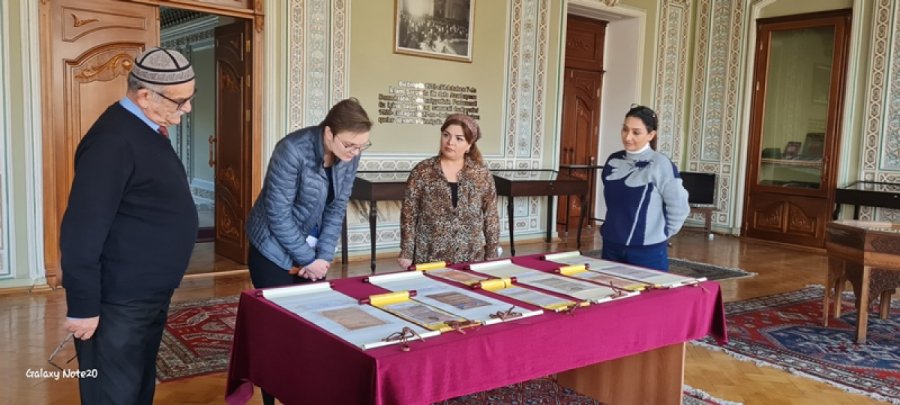 Sonra qonağa institutun ekspozisiya zalında sərgilənən qədim və nadir əlyazma nümunələri, elmi-tədqiqat müəssisəsinin fondunda mühafizə olunan yazılı abidələr, nadir eksponatlar, UNESCO-nun “Dünya yaddaşı” Beynəlxalq Reyestrinə daxil edilən əlyazma nüsxələri, o cümlədən Xurşidbanu Natəvanın “Gül dəftəri” illüstrasiyalı şeirlər albomu barədə ətraflı məlumat verilib.