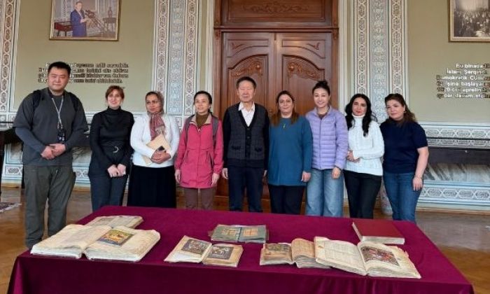 Çin Xalq Respublikasından gəlmiş qonaqlar AMEA-nın Məhəmməd Füzuli adına Əlyazmalar İnstitutunda olublar. Heyətdə Pekin Xarici Dillər Universitetinin professoru Mu Hongyan, Çin Musiqi Akademiyasının sabiq rektoru, “Çin musiqisi” jurnalının baş redaktoru professor Zhao Talimu, akademiyanın dosenti, zurna ifaçısı Zhang Qianyuan və akademiyanın doktorantı Zhang Wanbo yer alıb.