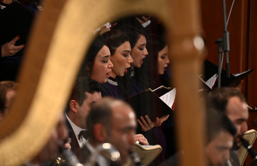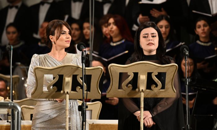 Konsert-tamaşa Əməkdar artist Əyyub Quliyevin dirijorluğu ilə Akademik Opera və Balet Teatrının simfonik orkestri və xorunun müşayiəti ilə təqdim edilib. Xormeyster Əməkdar incəsənət xadimi Sevil Hacıyeva, konsertmeysterlər Tofiq Şıxıyev, Roza Səlimova və Nüşabə İsadır.