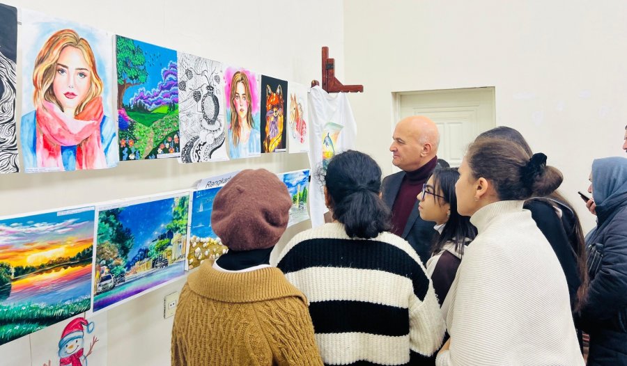 Sərgidə məktəbin rəsm şöbəsi şagirdlərinin əl işləri yer alıb. Onların xəyal dünyasında canlandırdıqları müasir şəhər mənzərələri, tarixi memarlıq nümunələri və gələcəyin yaşayış məkanlarını əks etdirən rəsmlər maraqla qarşılanıb.