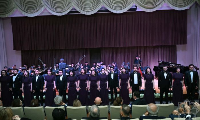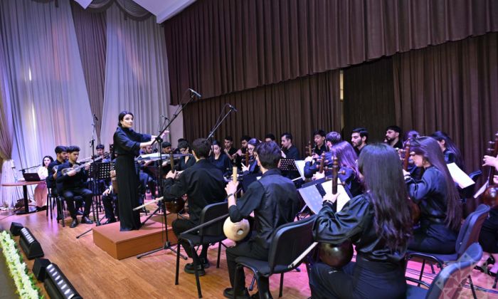 AMK-nın “Miras” qədim musiqi alətləri ansamblının (bədii rəhbər: Pikə Axundova) ifasında orta əsr musiqi dühası Əbdülqadir Marağainin yaradıcılığından “Hüseyni bəstə” səsləndirilib. Həmçinin Zülfüqar Hacıbəylinin “Aşıq Qərib” operasından fraqmentlər, “Qaragilə” xalq mahnısı, "Çahargah” təsnifi, E.Sabitoğlunun "Şükriyyə", Üzeyir Hacıbəylinin “Çırpınırdı Qara dəniz” mahnıları (hər ikisinin sözləri: Əhməd Cavad), “Leyli və Məcnun” operasından parçalar təqdim edilib. Bədii proqram Ü.Hacıbəyli və Ə.Cavadın "Azərbaycan marşı" (Dövlət Himni) ilə başa çatıb.