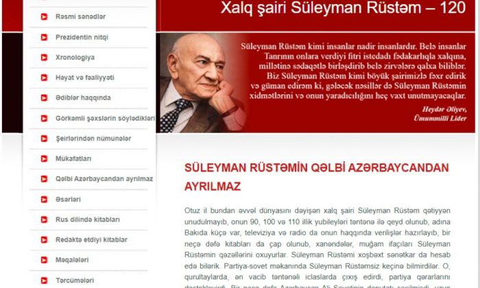 Martın 12-də Xalq şairi, ictimai xadim Süleyman Rüstəmin (1906–1989) anadan olmasının 120 illiyi tamam olur.