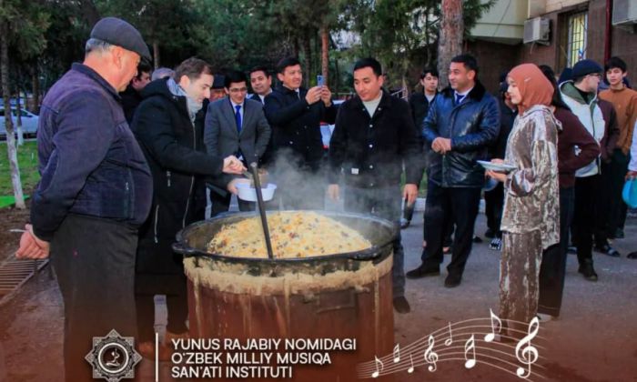 Görüşün sonunda tələbələr tarzəni özbək plovuna qonaq ediblər.