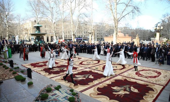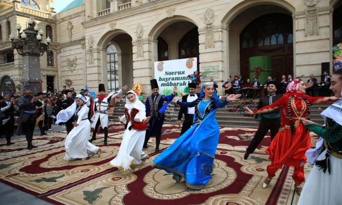 Gəncə Dövlət Filarmoniyasının qarşısındakı meydanda musiqi kollektivlərinin çıxışları olub. Milli adət-ənənələri əks etdirən səhnəciklər, zorxana idmanı nümayişi də maraqla qarşılanıb.