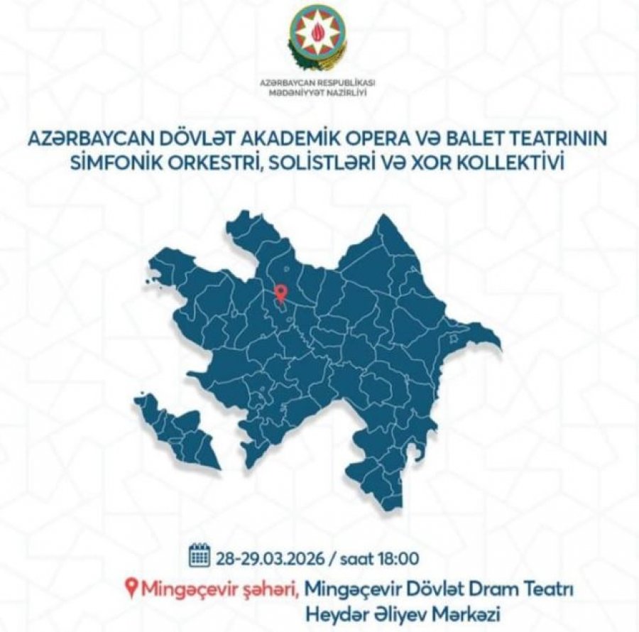 Akademik Opera və Balet Teatrının simfonik orkestri, solistləri və xor kollektivi 28-29 mart tarixlərində Mingəçevir şəhərində çıxış edəcək.