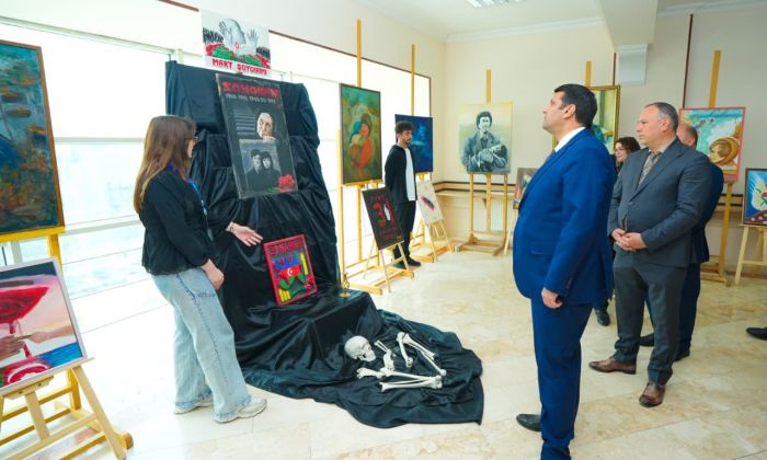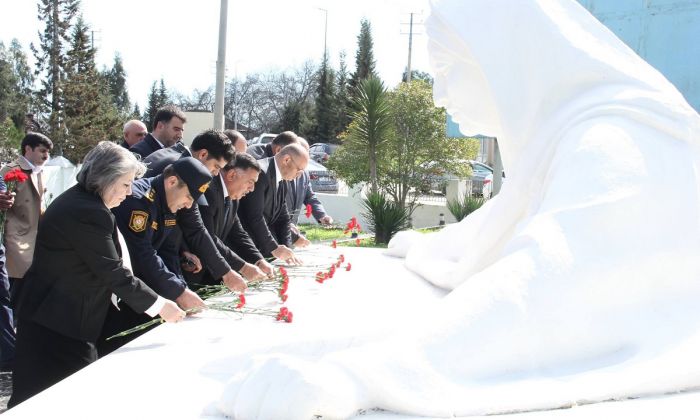 Əvvəlcə soyqırımı qurbanlarının, daha sonra isə Milli Qəhrəmanın əziz xatirəsi ehtiramla yad olunub, abidələr önünə gül dəstələri düzülüb.