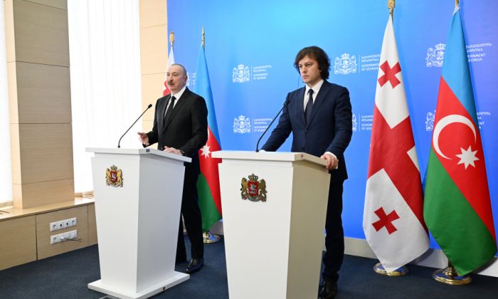 Sonra Azərbaycan Respublikasının Prezidenti İlham Əliyev və Gürcüstanın Baş naziri İrakli Kobaxidze mətbuata bəyanatlarla çıxış ediblər.