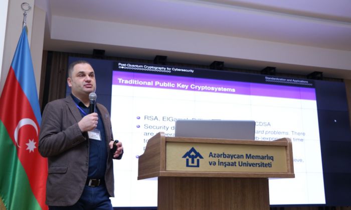 Konfransın ilk günü türkiyəli professor Sedat Akleylek “Postkvant kriptoqrafik protokollar: nəzəriyyədən praktikaya” mövzusunda məruzə ilə çıxış edib. Məruzədə gələcəyin kibertəhlükəsizlik çağırışları, kvant hesablama dövründə məlumatların qorunması və yeni şifrələmə mexanizmləri barədə məlumat verilib. Qeyd olunub ki, rəqəmsal transformasiya dövründə elm, təhsil və istehsalat arasında inteqrasiyanın gücləndirilməsi dayanıqlı inkişafın əsas şərtlərindən biridir.