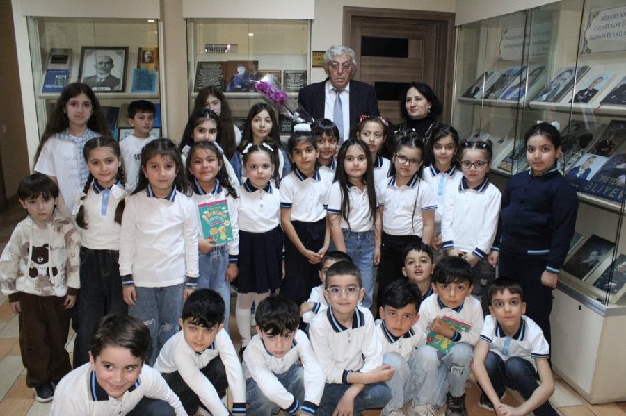 Sonda məktəblilər yazıçı ilə xatirə şəkilləri çəkdirib və müəllifdən avtoqraf alıblar.